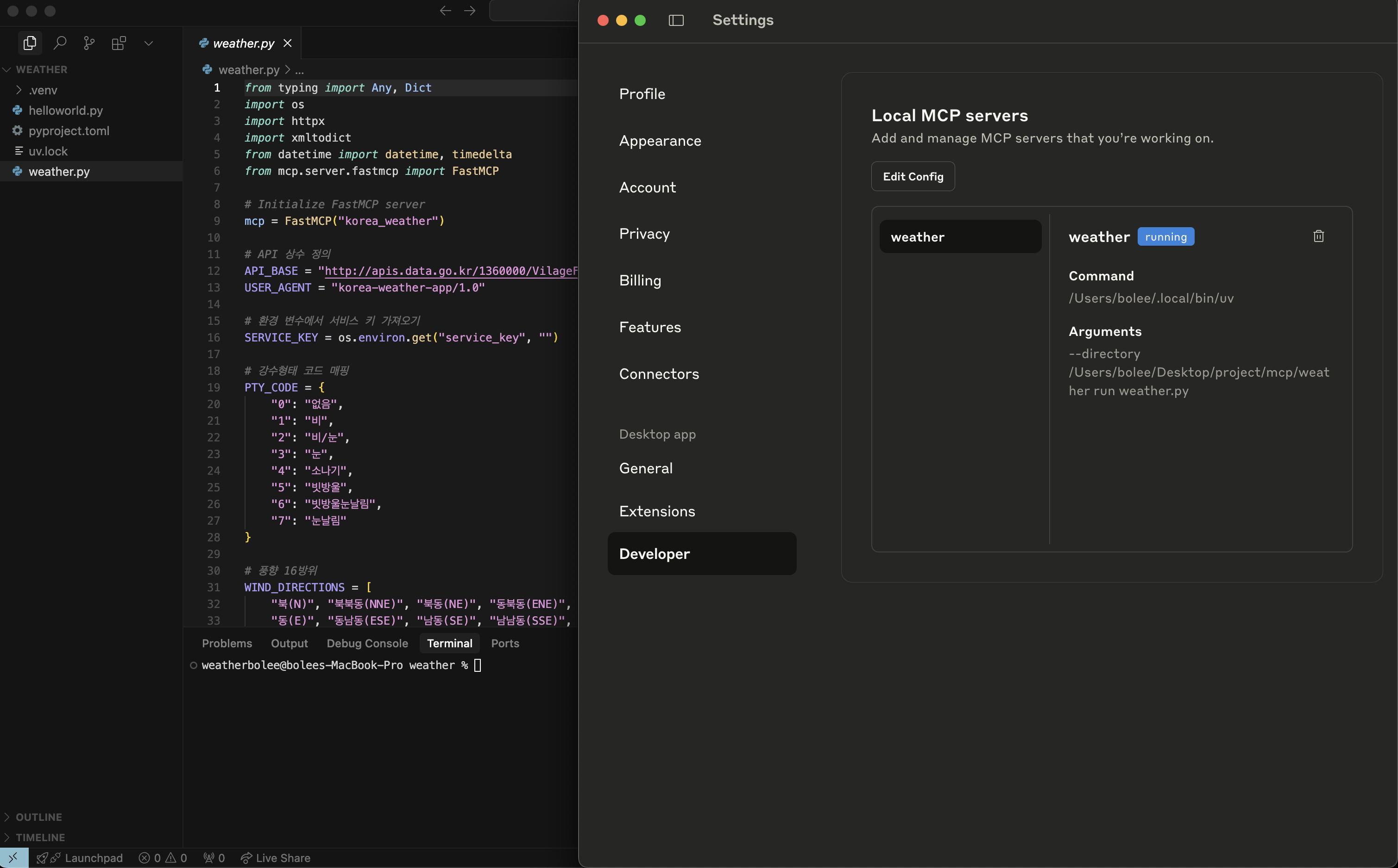 *유의사항: mac OS에서는 "command"에 uv의 폴더위치를 절대 경로로 적어야 함(uv라고만 적으면 못찾음)