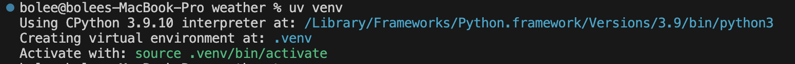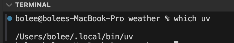 => 터미널창에 명령어 which uv를 입력하여 uv 설치경로 확인!