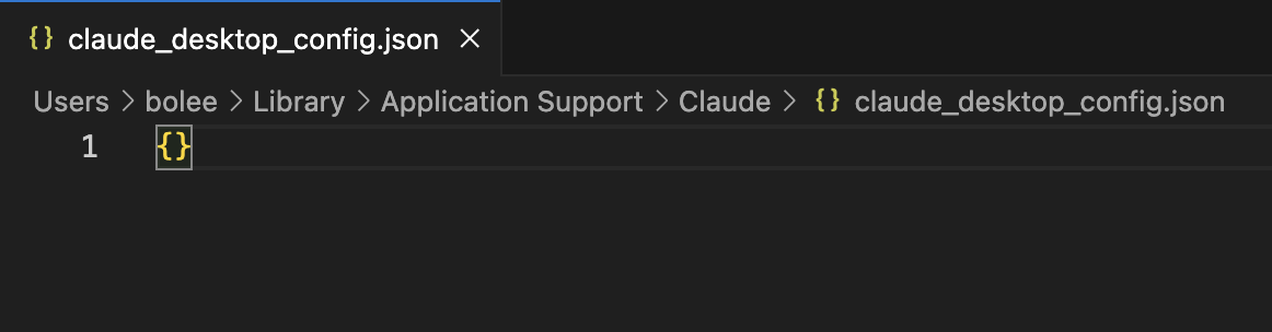 2) claude_desktop_config.json 파일을 처음 열면 아래와 같이 {} 외에는 아무런 내용이 없음