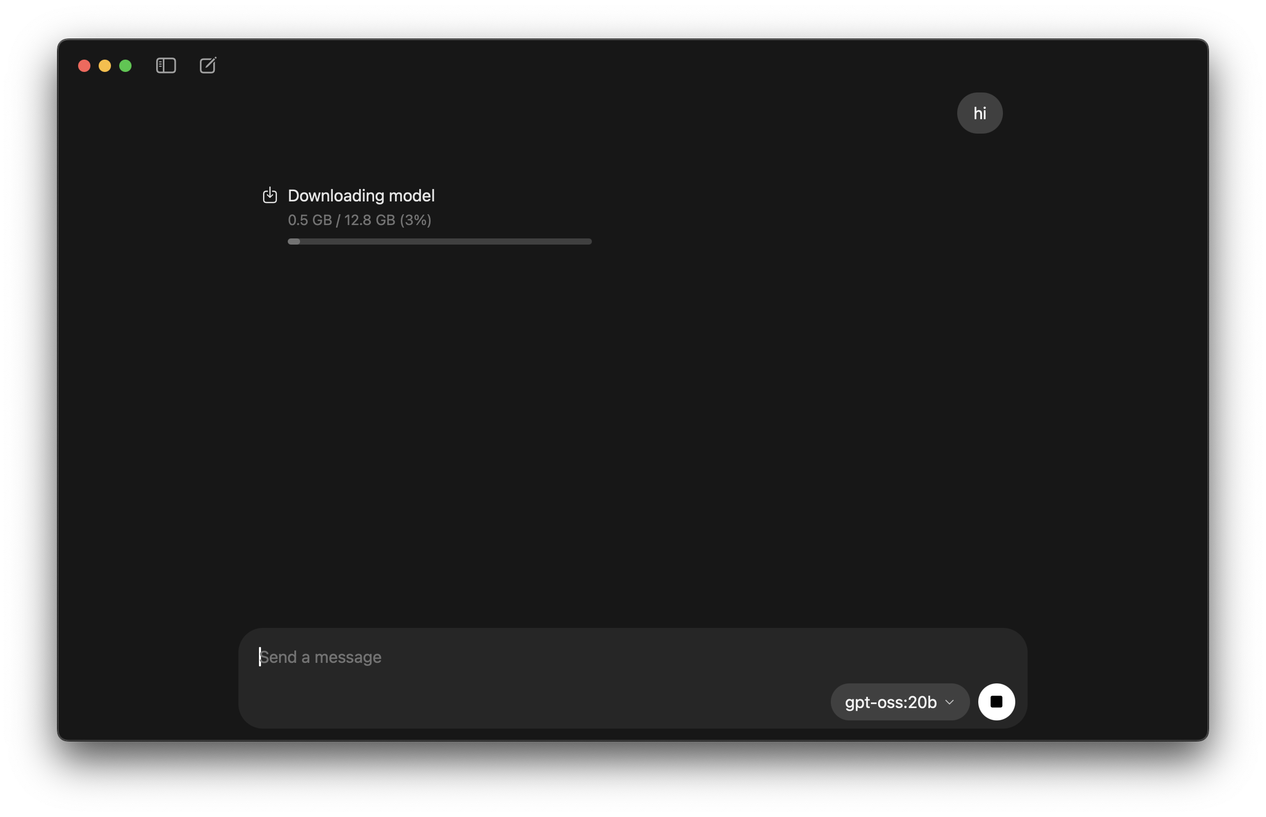 3. ollama 프롬프팅창으로 돌아가 아무거나 입력하면 선택한 모델을 다운로드 되는 걸 볼 수 있음