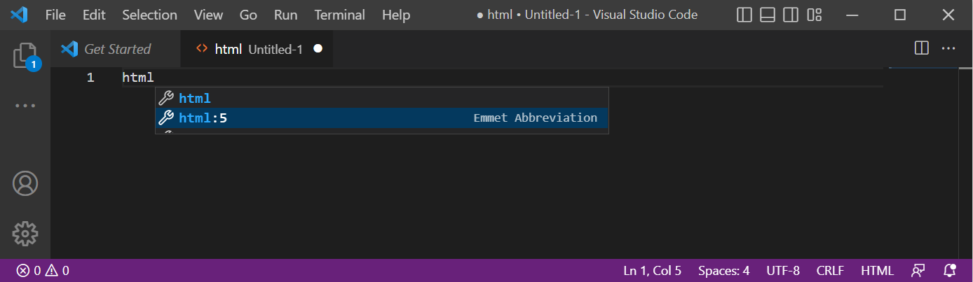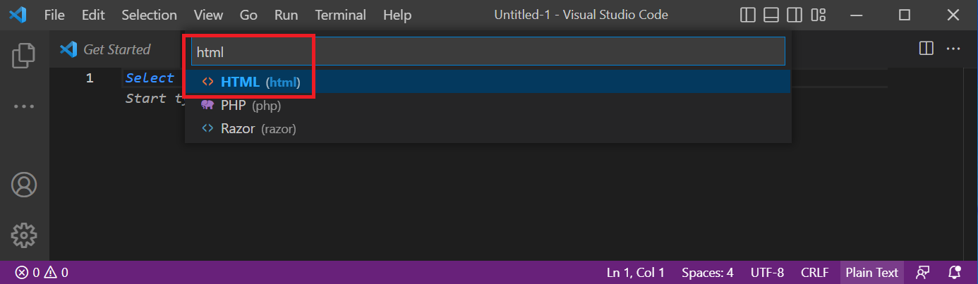 VScode는 파일의 확장자(파일 뒤에 붙는 .html 등)를 기반으로 파일의 언어를 판별해 다양한 코드 작성 보조 기능을 지원하기 때문에 동작하지 않는 경우, 파일의 확장자가 선택되어 있는지 확인 필요