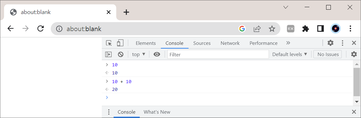 - 간단한 한 줄 코드 실행의 결과를 확인할 때는 구글 크롬 콘솔을 이용하는 것이 가장 편함