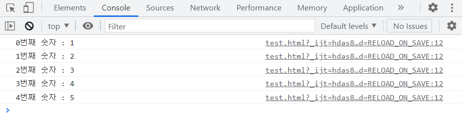 console.log(`${i}번째 숫자 : ${arrays[i]}`)
