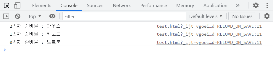 console.log(`${i}번째 준비물 : ${stuffs[i]}`)