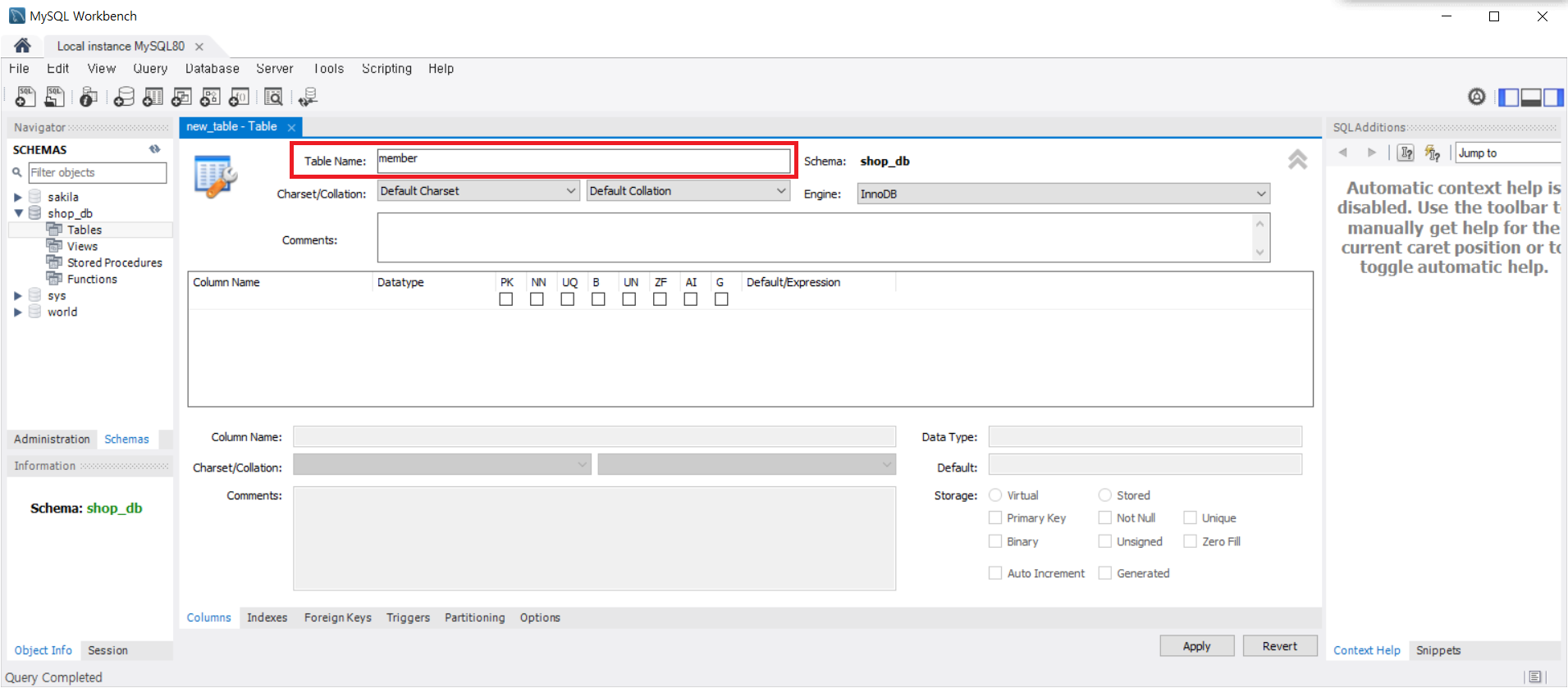 처음 배우는 단계이므로 자동으로 SQL 명령문을 만들어주는 MySQL 워크벤치를 이용
