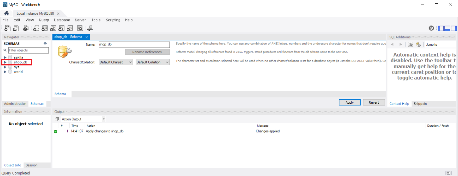 - 'shop_db'가 만들어진 것을 확인할 수 있음