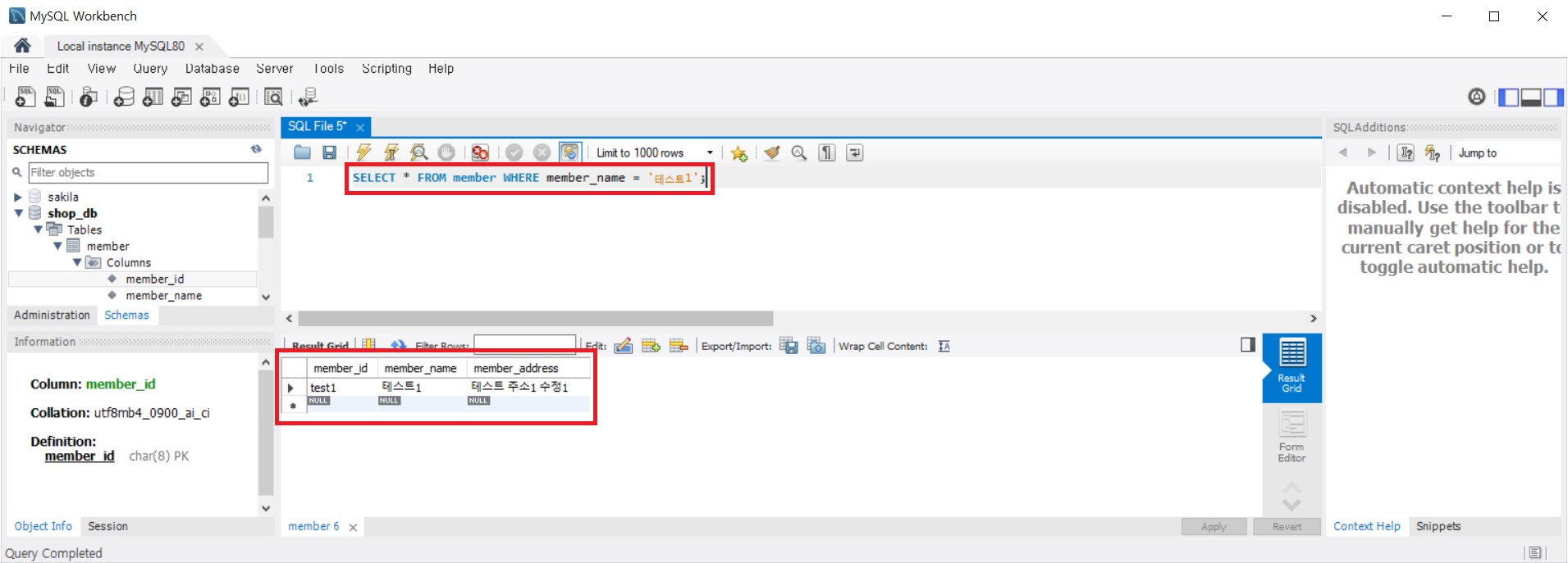 - SQL 명령문이 적용된 것을 확인할 수 있음