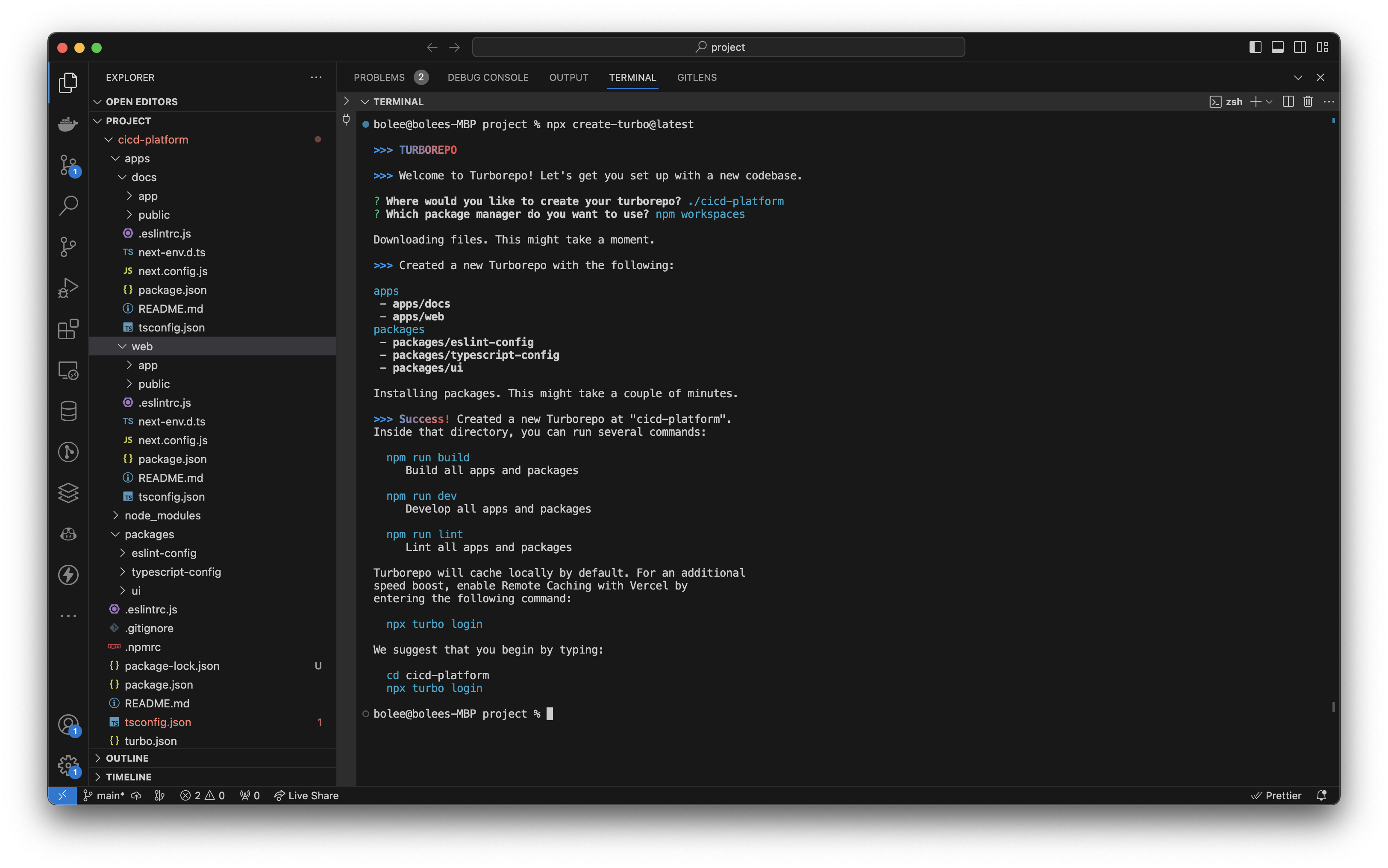Turborepo로 모노레포 생성하는 방법은 아래와 같이 간단하다.