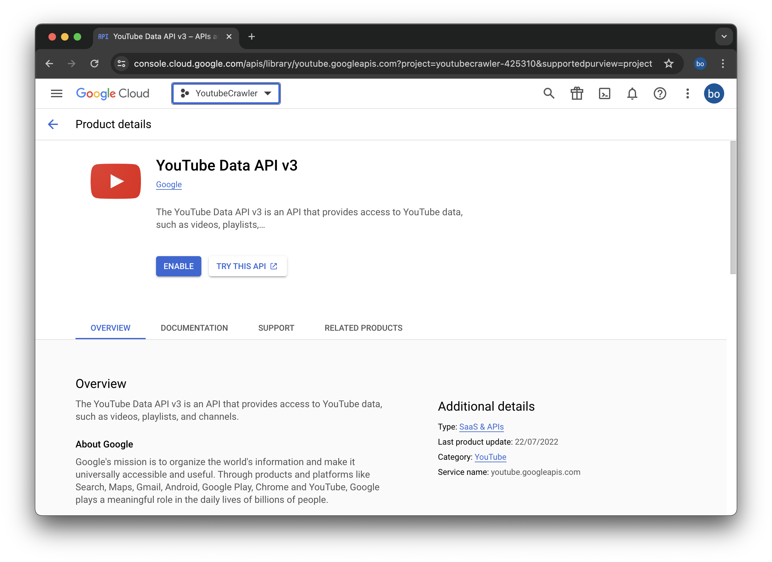 2. 'youtube data api v3' 검색 후 클릭