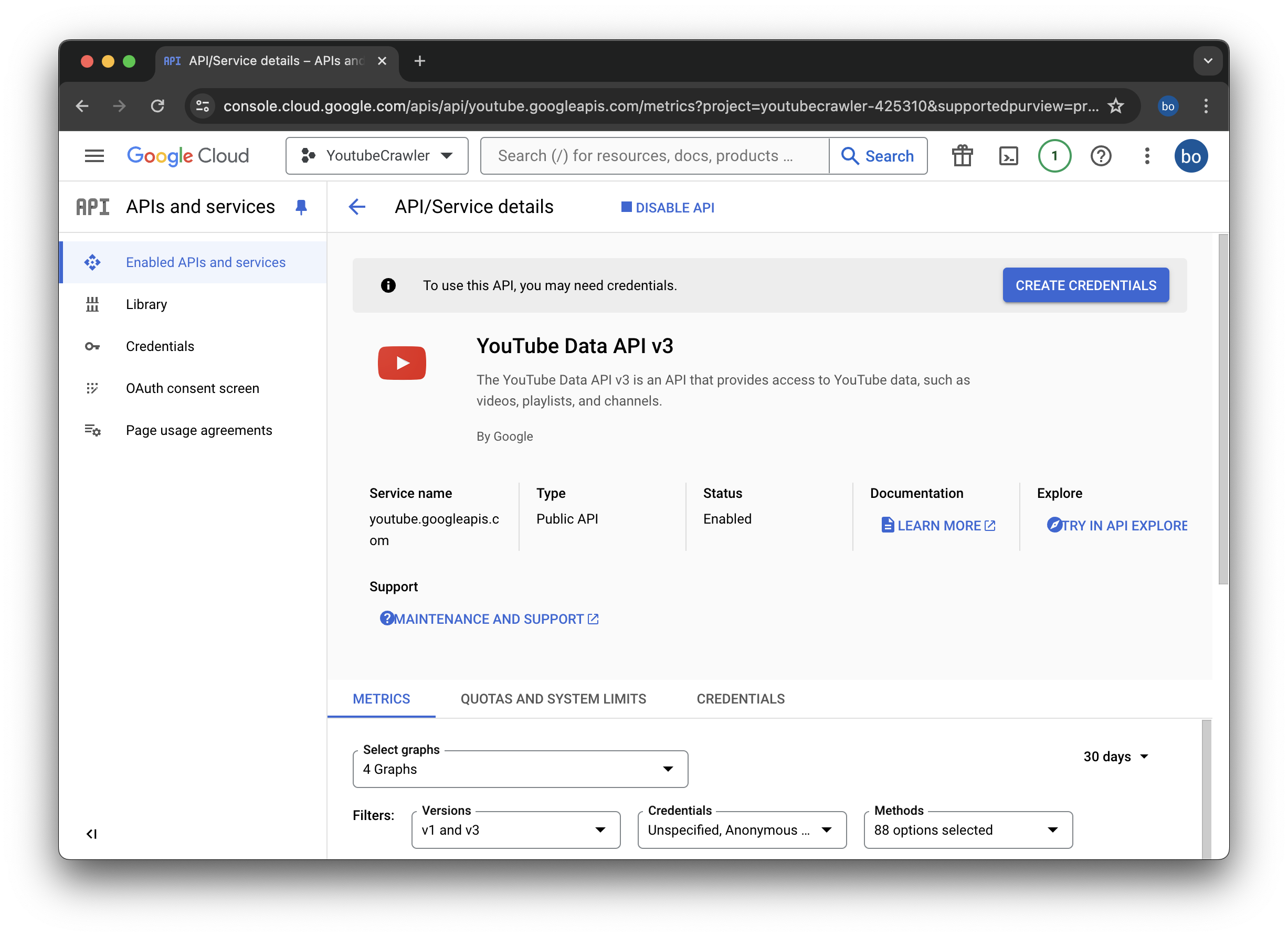 5. 좌측의 Credentials 클릭